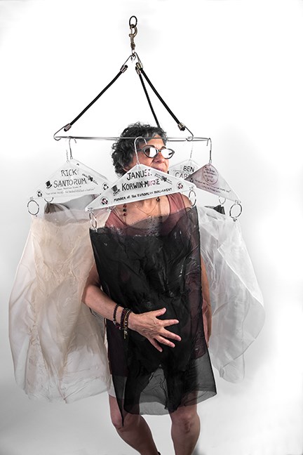 I work in textiles — primarily dyed, molded, and sewn silk, sometimes in combination with metal, plastic, chains, motors or other contrasting materials — to explore themes of sexuality and sensuality, gender fluidity, procreation, and transformation. My practice is rooted in my lived experience as a woman in a sexist society, and in dialogue with current political events and shifting contemporary perspectives. My impulse finds resonance in my upbringing: raised in a household of artists and poets and shaped by the cultural ferment of the 1960s.